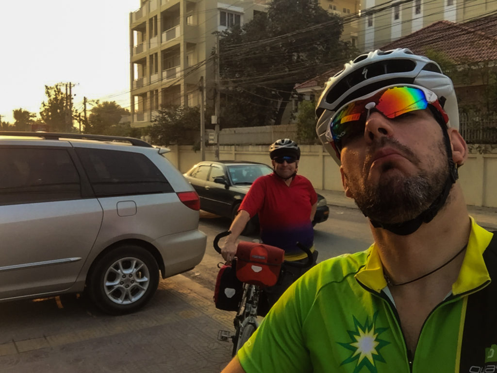 Gestern hieß es früh aufstehen. Sozusagen stand die Königsetappe der Tour an. Battambang nach Pursat. Das bedeutet in nackten Zahlen: 107 km, bei um die 33 Grad. Deswegen also recht früh los, damit wir der Hitze wenigstens ein wenig entgehen. Im nachhinein kann man auch sagen, das das wunderbar funktioniert hat. Die ersten 2 Stunden war es eigentlich angenehm Kühl bevor es langsam, aber sicher, wärmer wurde. Als Rettungsanker hatten wir uns noch Moung Reussei, auf ungefähr der Hälfte der Etappe ausgesucht. Dort soll es noch ein Guesthouse geben. Dort angekommen fühlten wir uns aber alle so gut, daß wir Einstimmig entschieden, weiter zu fahren. Es lief auch echt super und wir haben mi unseren bepackten Bikes einen beachtlichen Schnitt hingelegt, wie man aus dem Strava-Chart entnehmen kann. Sind wir auf den ersten 80 km mit nur zwei Stopps ausgekommen. mussten wir am Ende nochmal zwei einlegen… Die letzten knapp 30 km waren dann auch von den Temperaturen her echt eine Prüfung. Zum Glück fanden wir das Hotel auf Anhieb, verstauten nur schnell unsere Bikes und unser Gepäck und stürzten uns regelrecht in den Pool um etwas Abkühlung zu bekommen.